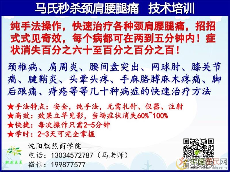 柔性正骨术+微针浅筋膜松解术,速治各种颈肩腰腿痛(微信:199877577):颈椎病、肩周炎、腰间盘突出、网球肘、膝关节痛、腱鞘炎、头晕头疼、手麻胳膊麻木疼痛、脚后跟痛、痔疮等等几十种病症的快速治疗方法 www.cnbianmin.com。